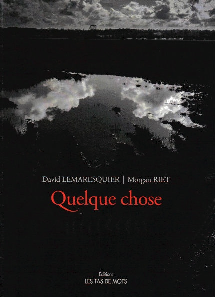 En 28 poèmes et autant d’images, le lecteur est invité à faire fonctionner des jeux de correspondance entre les deux arts parfois directs, parfois plus subtils. Le lecteur est sollicité entre les courts poèmes alertes, rythmés, sonores qui n’esquivent pas les jeux de mots (Demain/est un autre joug) et les clichés noir et blanc somptueux soulignés par des interventions graphiques. Il est invité à une découverte de Quelque chose qui se situerait entre les mots et les images.